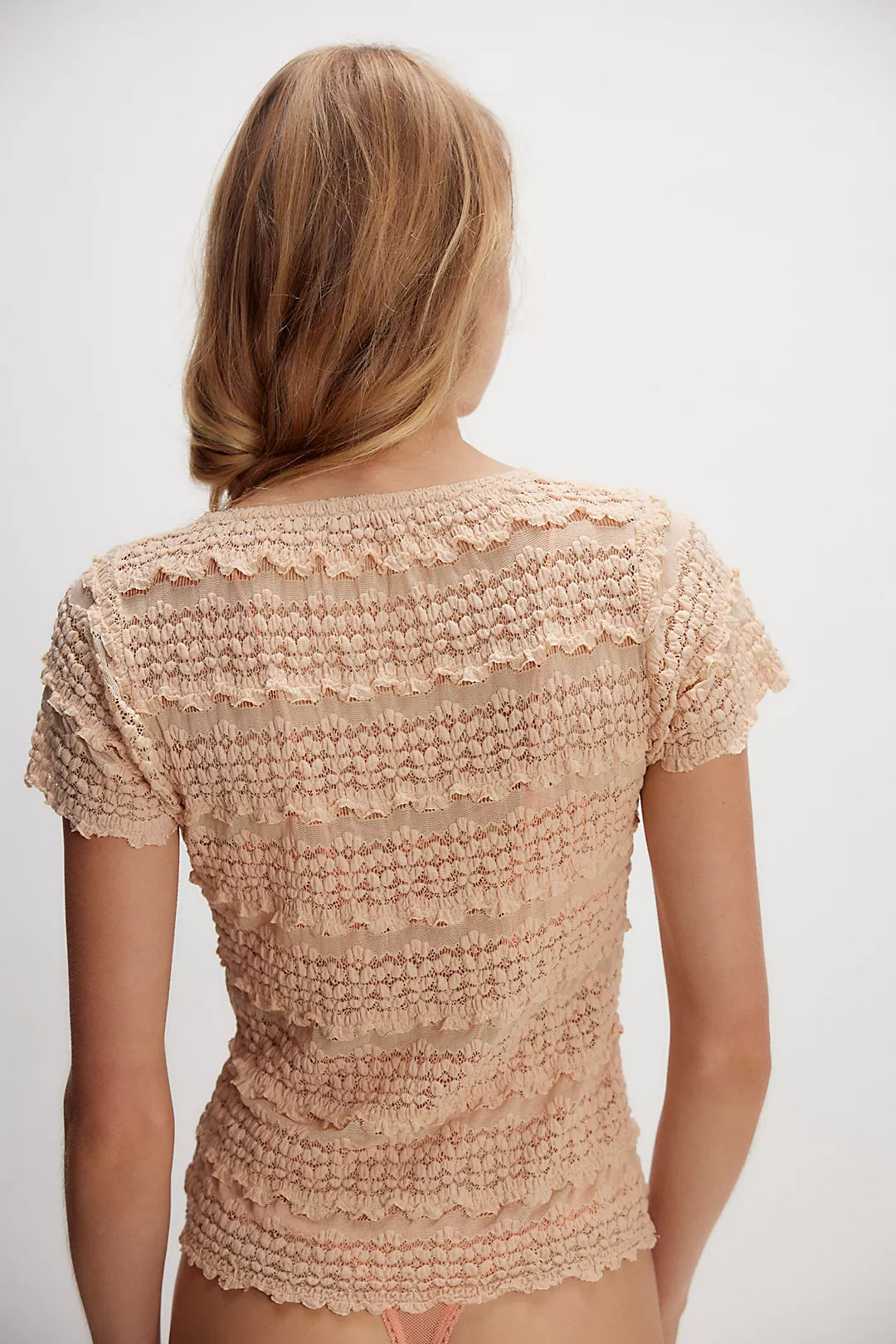 Lines of lace and tulle take this baby tee from Intimately to new heights.