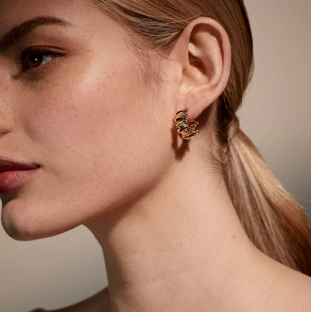 The April Hoops offer a modern twist on timeless earrings. Featuring a soft folds in an organic style. Lightweight and durable, they are sure to make a statement.