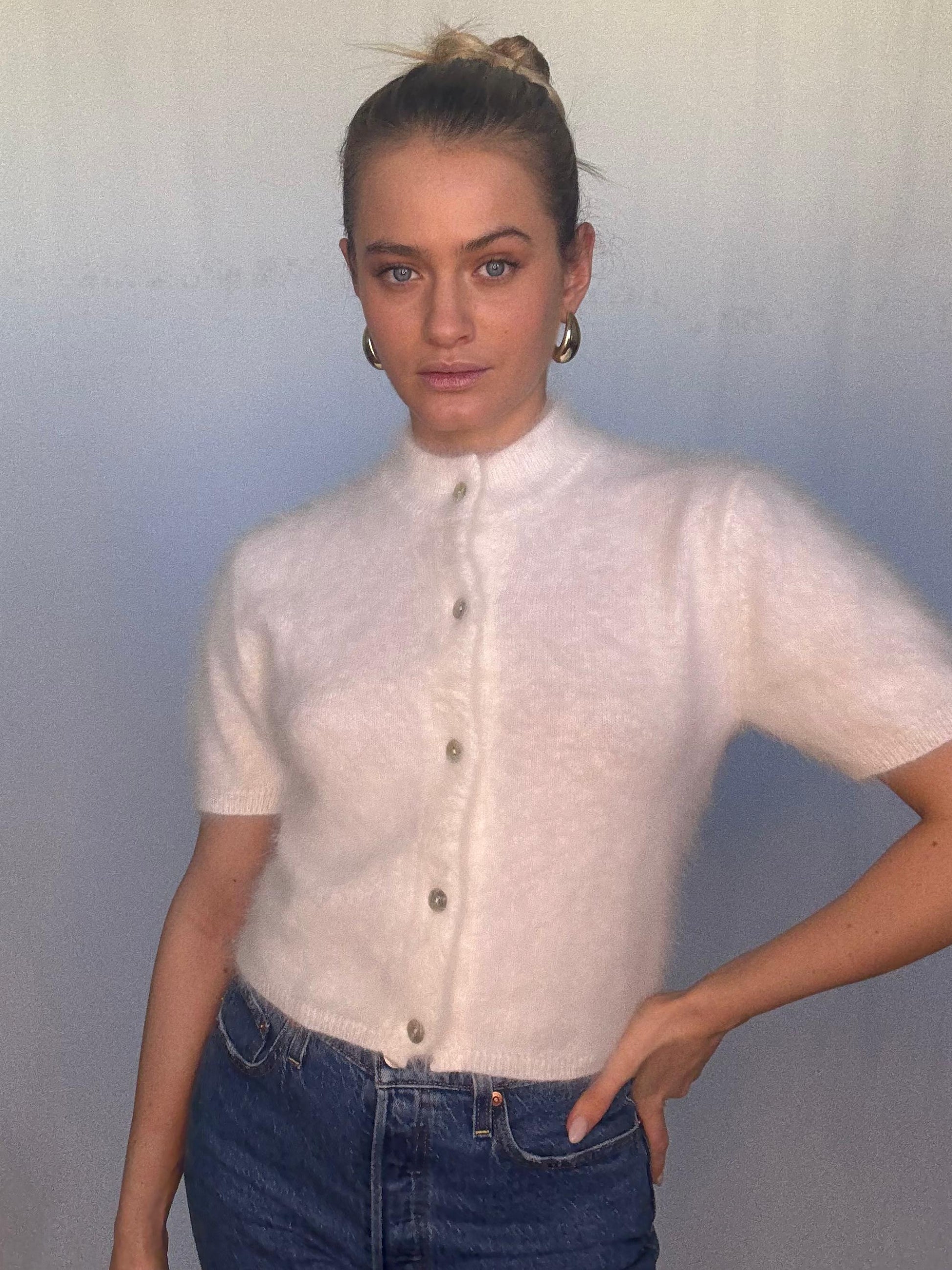 Claudia Short Sleeve Cardigan - Snow