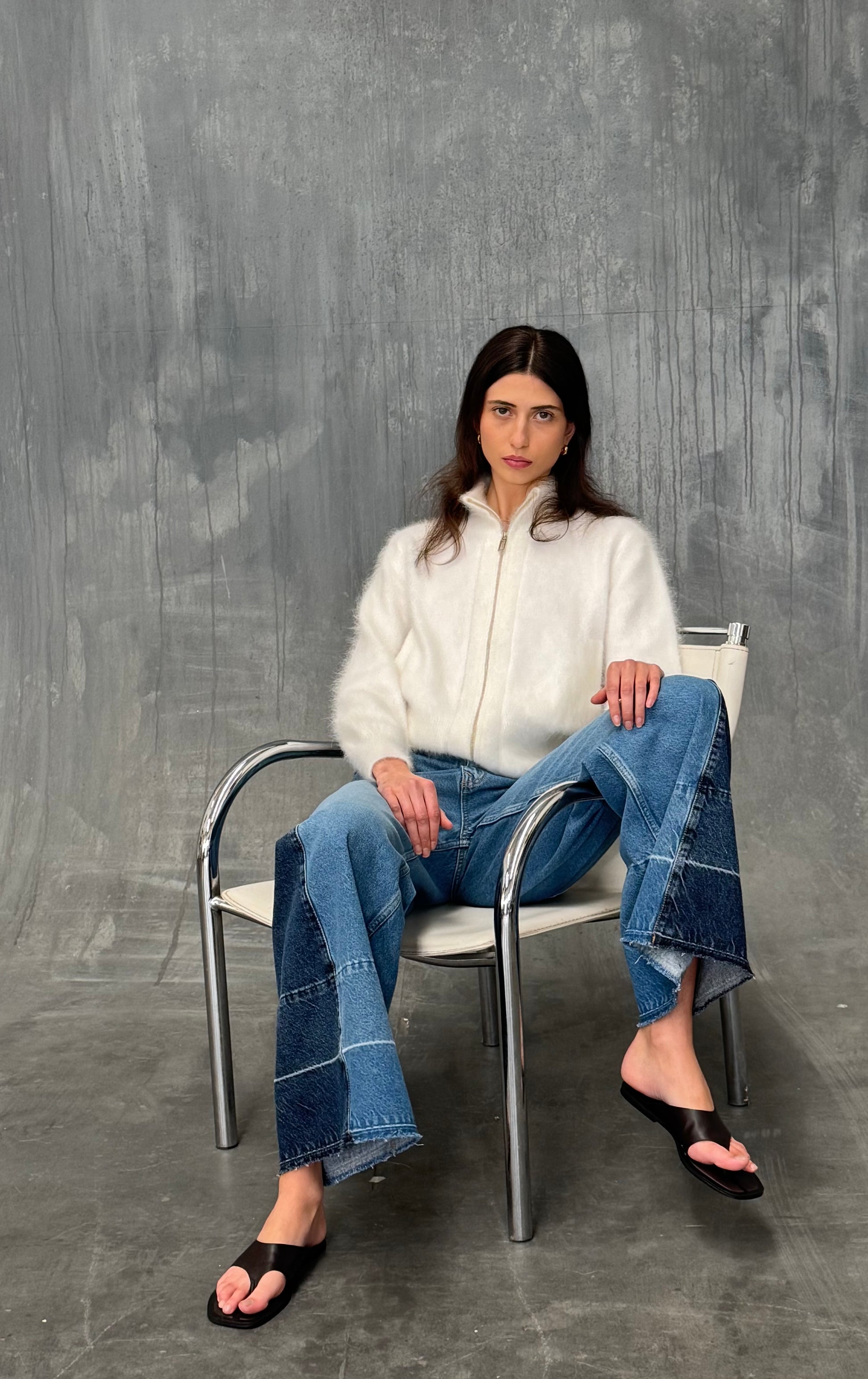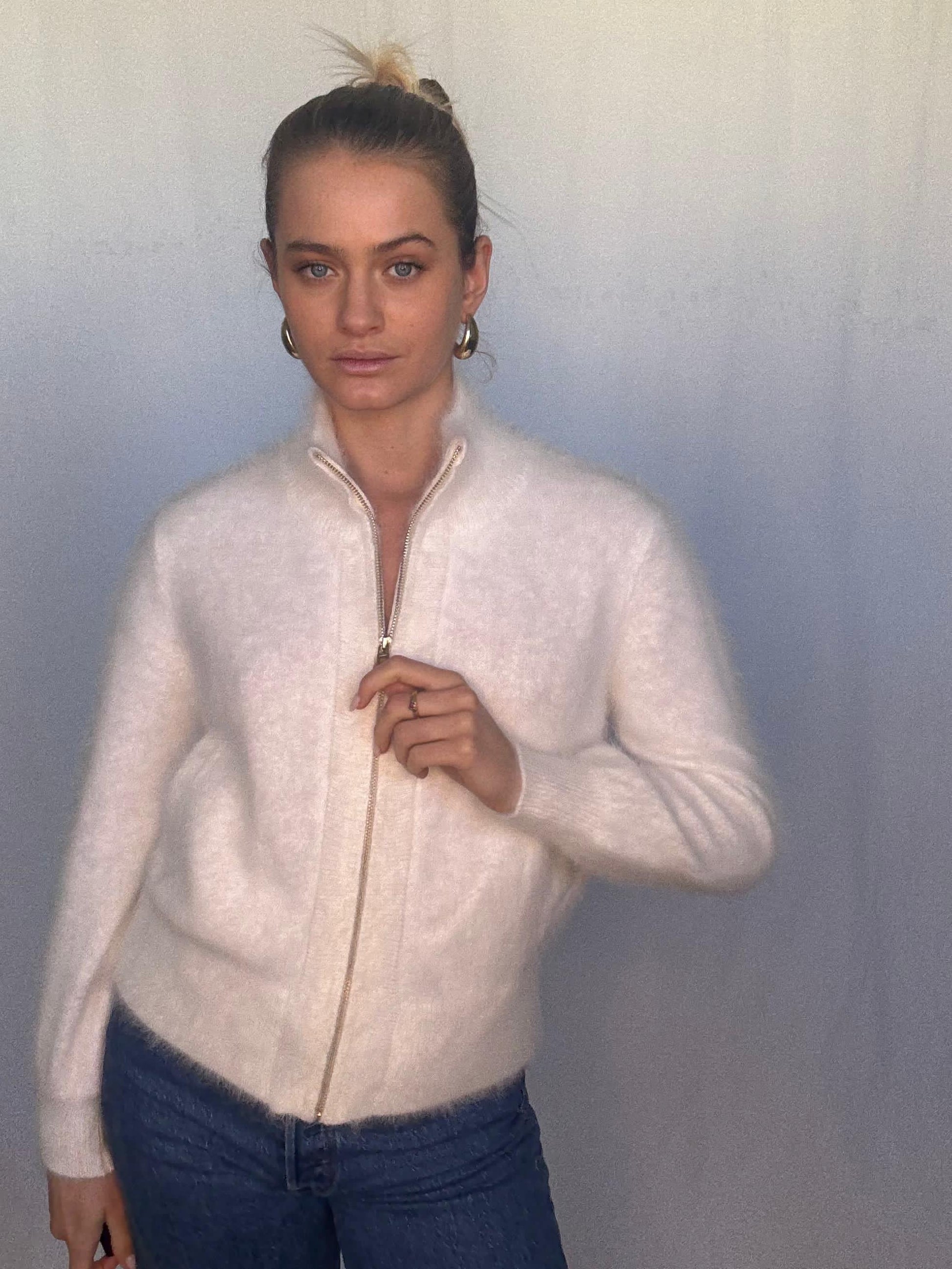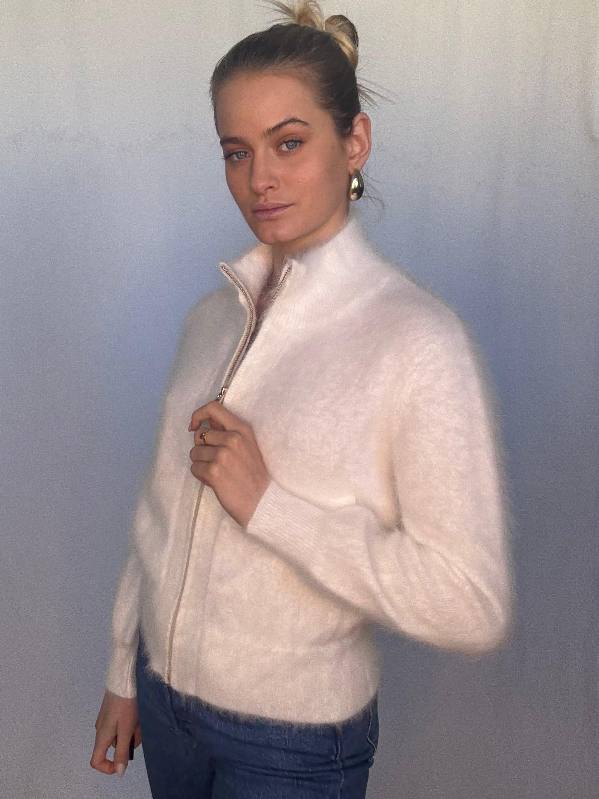 Our Felix Zip Cardigan is not just a stylish layering piece but also an everyday essential. With its luxurious material and gold hardware, it's the perfect addition to any outfit.