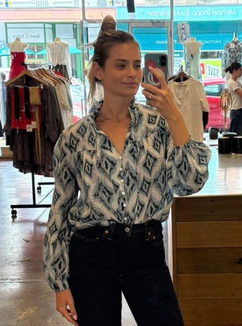 Expertly crafted with 100% Rayon, our Romy Blouse offers a versatile and elegant style perfect for any occasion. The detailed tie front adds a touch of sophistication and charm to this must-have piece for any wardrobe.