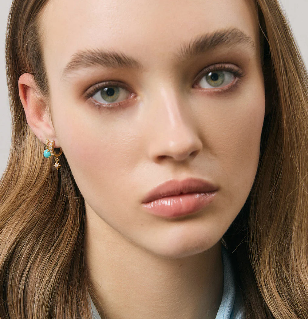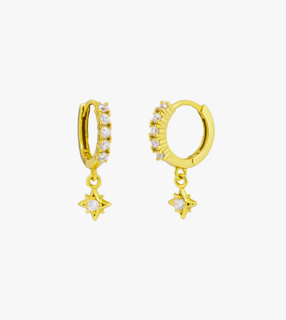 Effortlessly elevate your wardrobe with our Rosette Sleepers. They feature a small hoop adorned with cubic zirconia crystals with a hanging star pendant. A pretty style that is perfect for stacking.