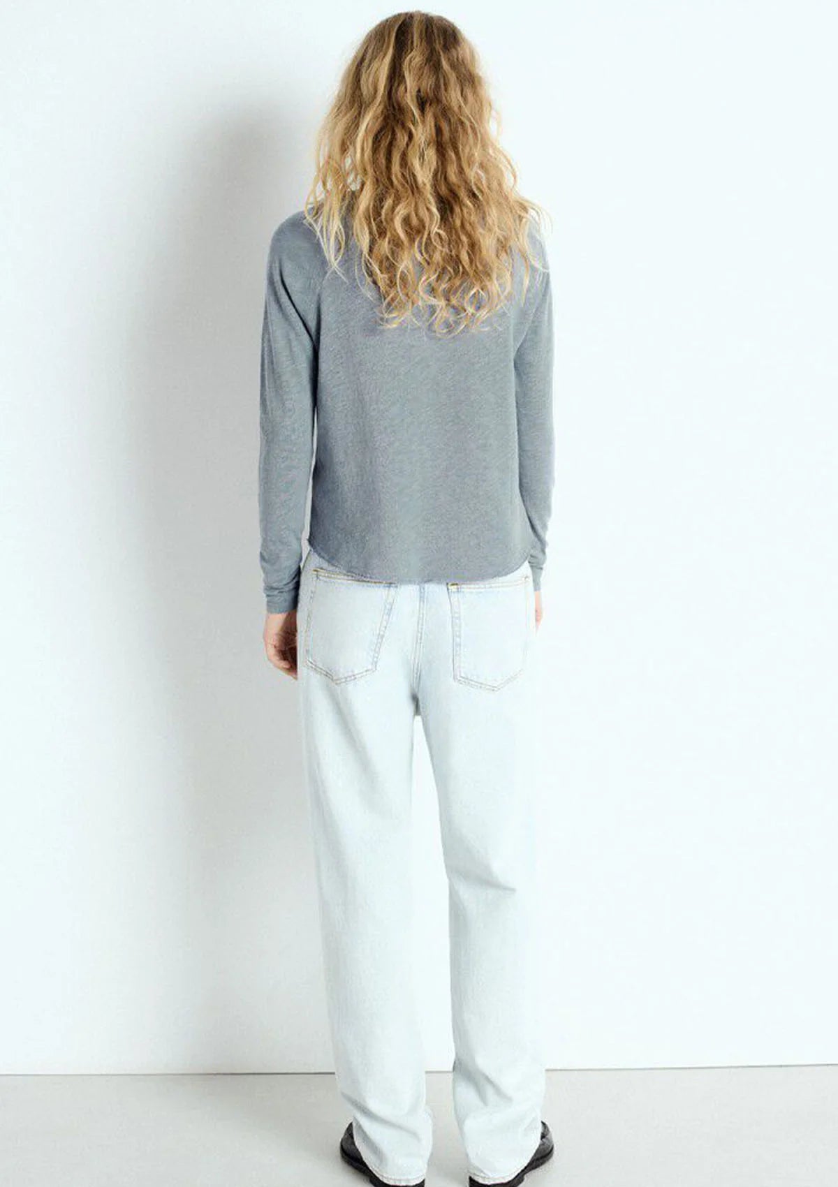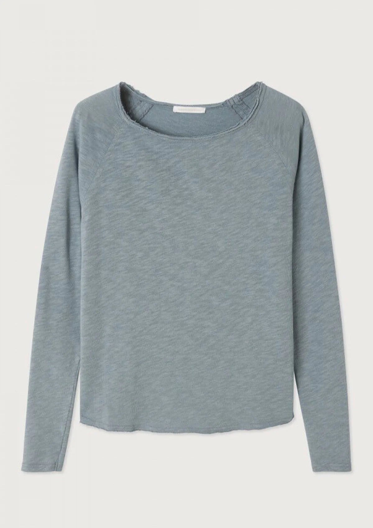 Cosy yet elevated everyday styling, an american vintage lightweight cotton sonoma bateau neck long sleeve boat neck t-shirt. In a pure cotton single jersey featuring raglan long sleeves and raw edge trim.